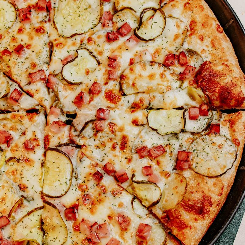Zesty Ranch Sauce • Mozzarella Cheese • Sliced Dill Pickles • Diced Ham • Dill